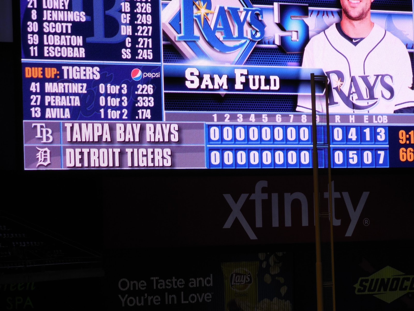 The Rays squeaked out three runs in the 9th on a sac fly and a couple hits. My new favorite Ray, Fernando Rodney (thanks to number 50), got the save.